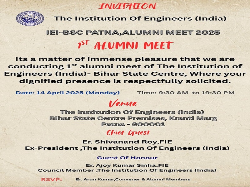IEI-BSC PATNA Alumni Meet-2025 Various Committees for 2025-Meet
